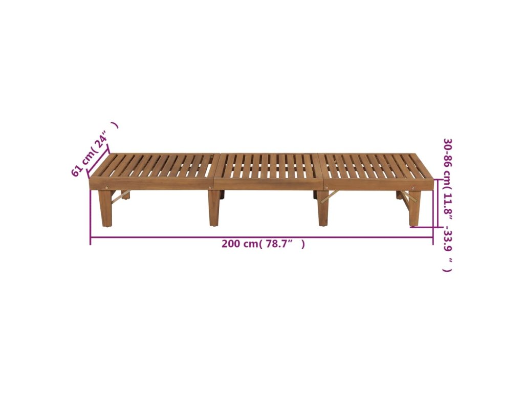 - Rozměry zahradního lehátka (při rozložení): 200 x 61 x 30/86 cm (D x Š x V)