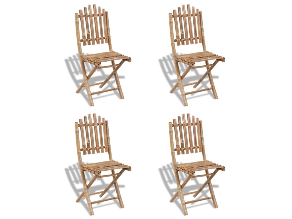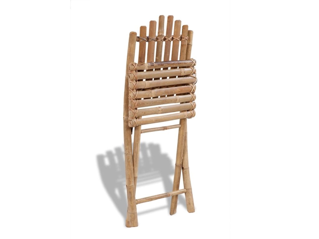 Tento jídelní set, vyrobený z masivního bambusu, je pevný a odolný. Je také rezistentní vůči vodě a povětrnostním vlivům a snadno se čistí vlhkým hadříkem. A pokud židle zrovna nepoužíváte, můžete je složit, a ušetřit tak místo.