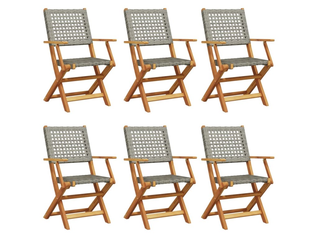 Skládací zahradní židle 6 ks šedé polyratan a masivní dřevo 3214560