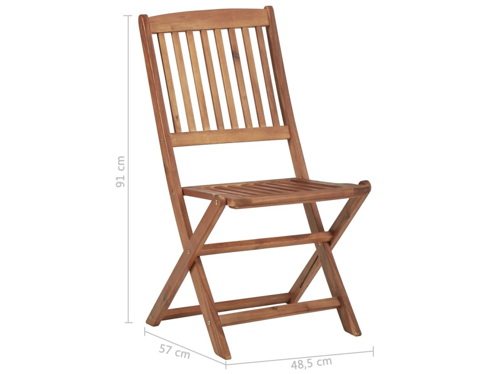Jídelní židle jsou vyrobené z masivního akáciového dřeva. Jde o tvrdé tropické dřevo, které je známé svou odolností vůči opotřebení a rozmarům počasí. Olejem ošetřený povrch snadno očistíte vlhkým hadříkem. Pokud židle právě nepoužíváte, můžete je složit, aby vám zbytečně nepřekážely.