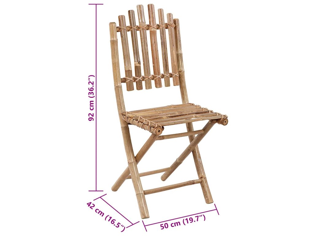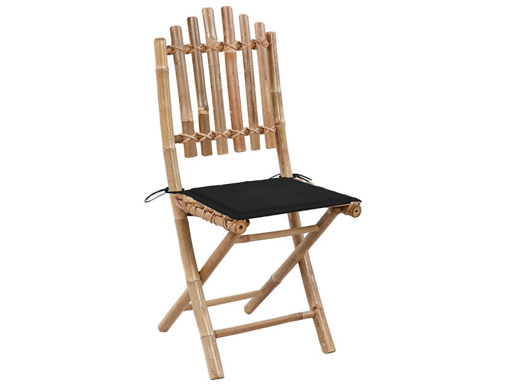 Zahradní židle je zhotovená z masivního bambusu, je tedy pevná a hodně toho vydrží. Skvěle také vzdoruje vodě a dalším klimatickým vlivům a k očištění vám postačí navlhčený hadřík. Jídelní židli lze složit, abyste ušetřili místo, když ji zrovna nepoužíváte. Přiložené podušky se vám při odpočinku postarají o maximální pohodlí. Jsou ušité ze 100% polyesteru, jsou tedy dostatečně silné a odolné, aby zvládly běžné venkovní používání. Každá z nich je opatřená dvěma páry šňůrek, kterými je můžete k židli pevně přichytit.
