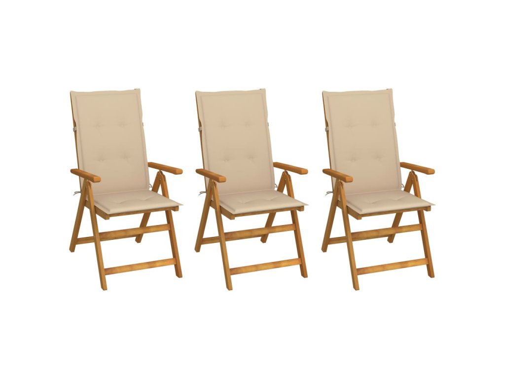 Skládací zahradní židle s poduškami 3 ks masivní akáciové dřevo 3064092