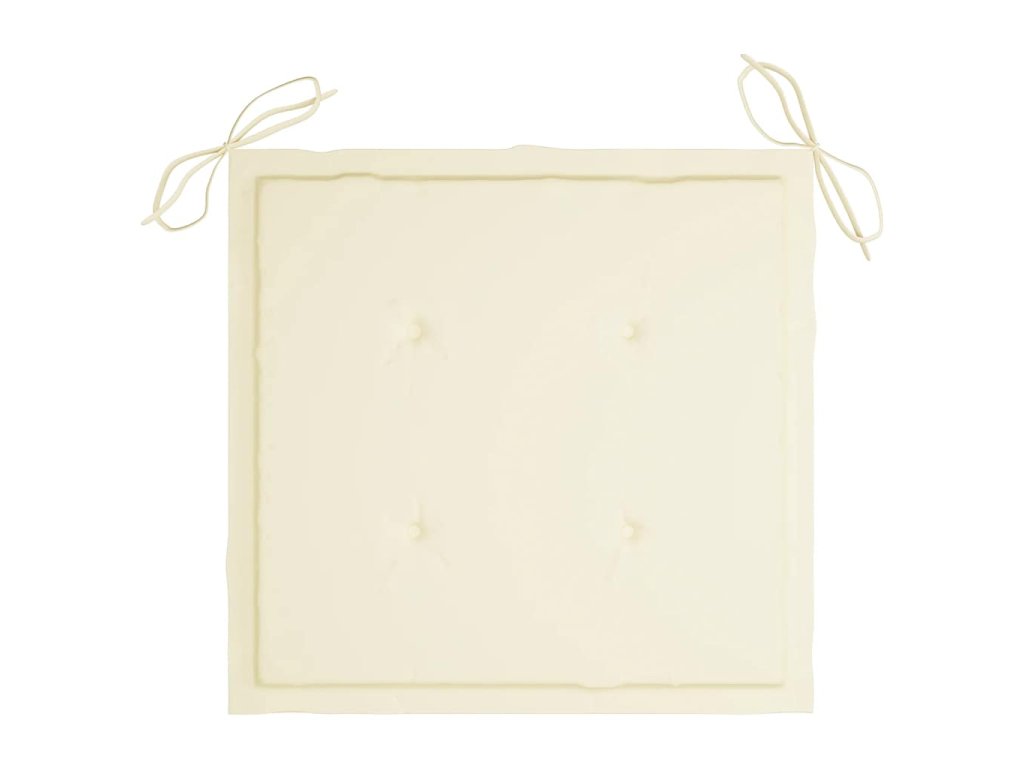 Nábytek je zhotovený z extrémně odolného teakového tvrdého dřeva, které již prošlo procesem smršťování, bylo uměle vysušené a poté jemně a dohladka obroušené. Teakové dřevo je oceňované pro svou výjimečnou pevnost a klimatickou odolnost, a proto je jedním z nejoblíbenějších materiálů pro výrobu zahradního nábytku. Jedná se o skvělou volbu, pokud si chcete pořídit venkovní výbavu, která vám bude sloužit dlouhá léta. Jídelní židle mají obroušený povrch, takže jsou odolné vůči povětrnostním podmínkám a snadno se čistí. Navíc je můžete složit, čímž ušetříte místo ve chvílích, kdy je zrovna nebudete používat. Podušky, které jsou součástí sady, nabízí mimořádné pohodlí. Každá poduška je opatřená 2 páry šňůrek, abyste mohli podušku pevně přivázat k židli.