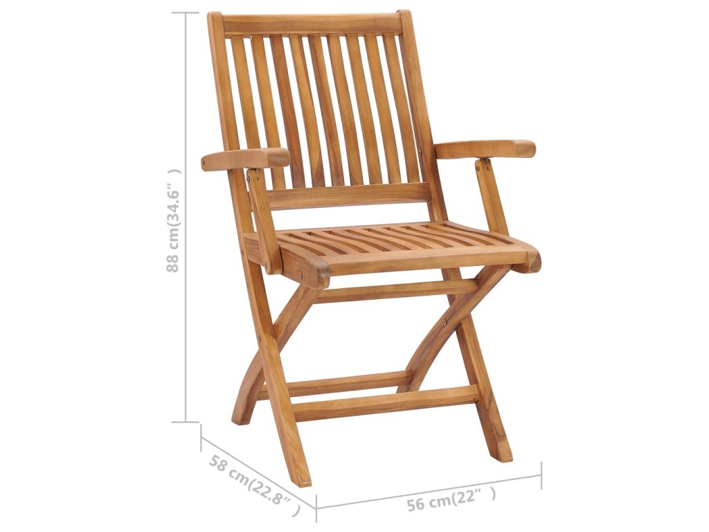 Nábytek je zhotovený z extrémně odolného teakového tvrdého dřeva, které již prošlo procesem smršťování, bylo uměle vysušené a poté jemně a dohladka obroušené. Teakové dřevo je oceňované pro svou výjimečnou pevnost a klimatickou odolnost, a proto je jedním z nejoblíbenějších materiálů pro výrobu zahradního nábytku. Jedná se o skvělou volbu, pokud si chcete pořídit venkovní výbavu, která vám bude sloužit dlouhá léta. Jídelní židle mají obroušený povrch, takže jsou odolné vůči povětrnostním podmínkám a snadno se čistí. Navíc je můžete složit, čímž ušetříte místo ve chvílích, kdy je zrovna nebudete používat. Podušky, které jsou součástí sady, nabízí mimořádné pohodlí. Každá poduška je opatřená 2 páry šňůrek, abyste mohli podušku pevně přivázat k židli.