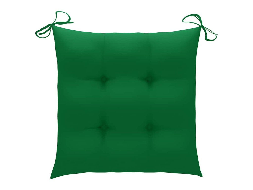 Nábytek je zhotovený z extrémně odolného teakového tvrdého dřeva, které již prošlo procesem smršťování, bylo uměle vysušené a poté jemně a dohladka obroušené. Teakové dřevo je oceňované pro svou výjimečnou pevnost a klimatickou odolnost, a proto je jedním z nejoblíbenějších materiálů pro výrobu zahradního nábytku. Jedná se o skvělou volbu, pokud si chcete pořídit venkovní výbavu, která vám bude sloužit dlouhá léta. Jídelní židle mají obroušený povrch, takže jsou odolné vůči povětrnostním podmínkám a snadno se čistí. Navíc je můžete složit, čímž ušetříte místo ve chvílích, kdy je zrovna nebudete používat. Podušky, které jsou součástí sady, nabízí mimořádné pohodlí. Každá poduška je opatřená 2 páry šňůrek, abyste mohli podušku pevně přivázat k židli.