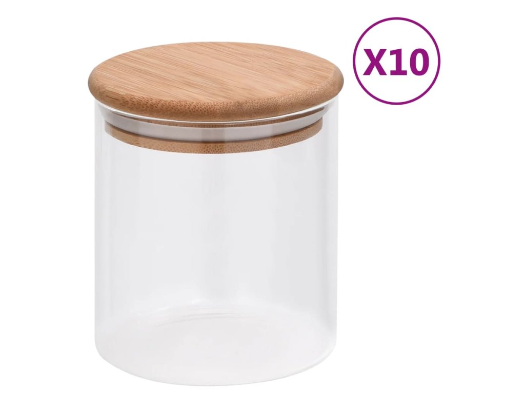 Skleněné dózy s bambusovým víčkem 10 ks 600 ml 150695