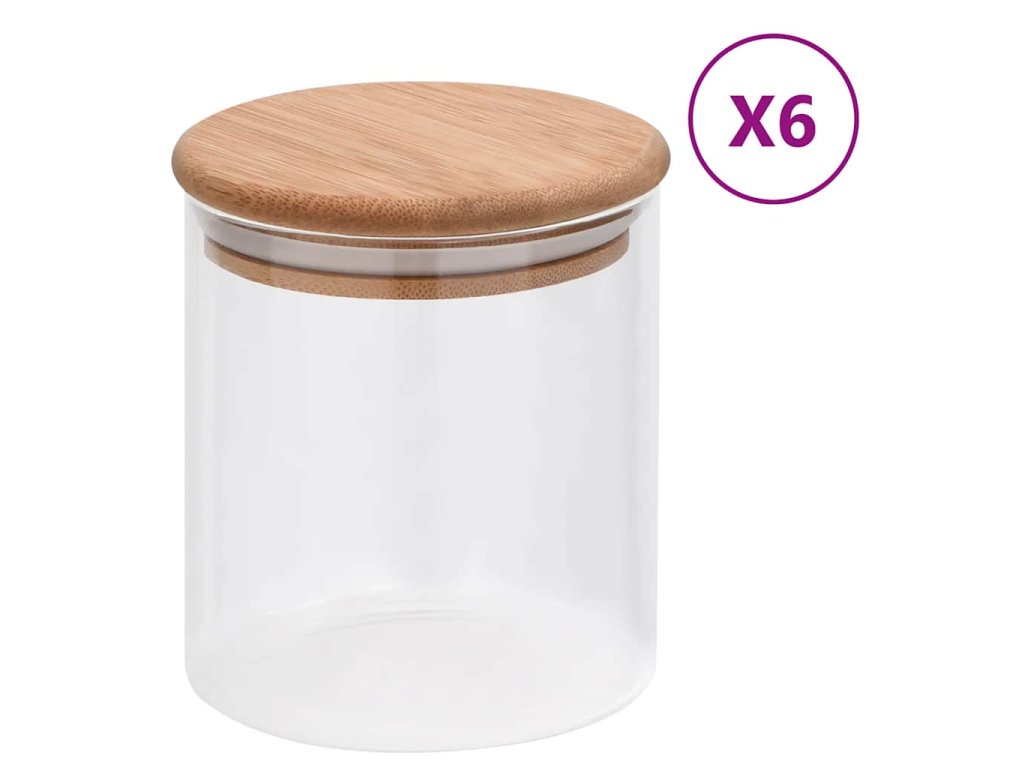 Skleněné dózy s bambusovým víčkem 6 ks 600 ml 150694