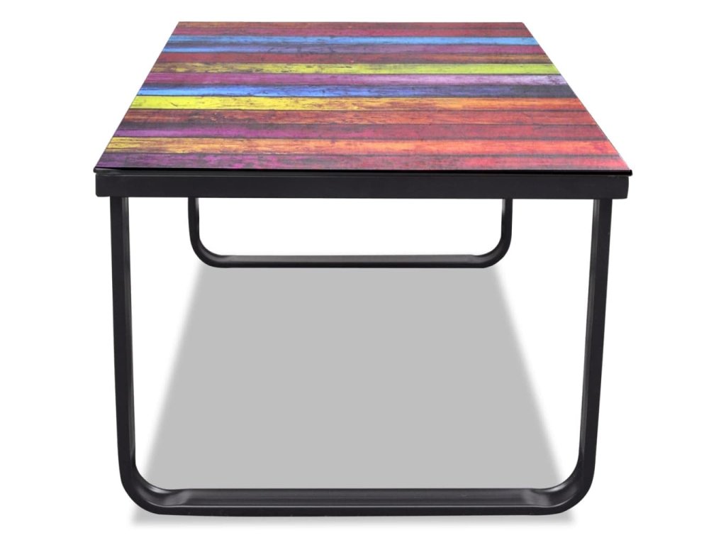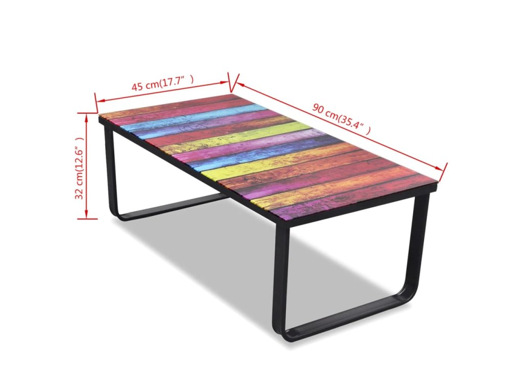 Tento obdélníkový konferenční stolek s duhovým potiskem na stolní desce má moderní, elegantní vzhled a bude se hodit k nábytku ve vašem domě. Můžete ho používat jako konferenční nebo jako odkládací stolek.