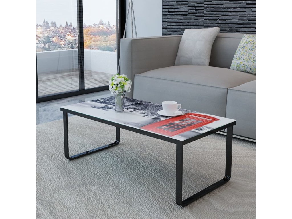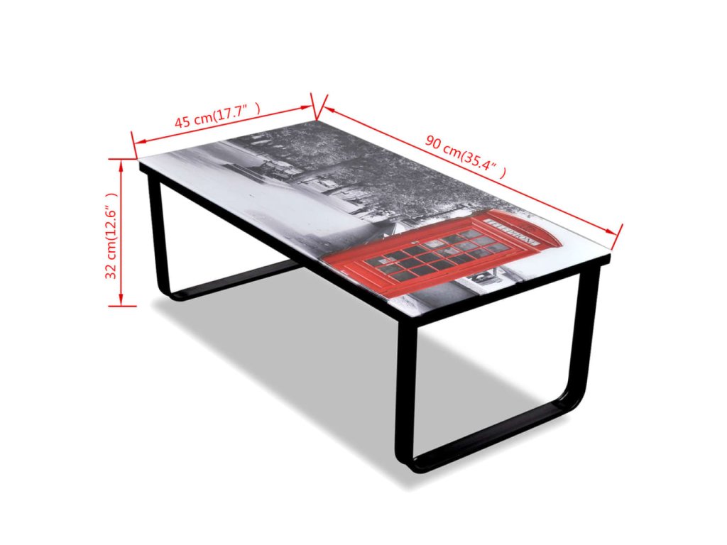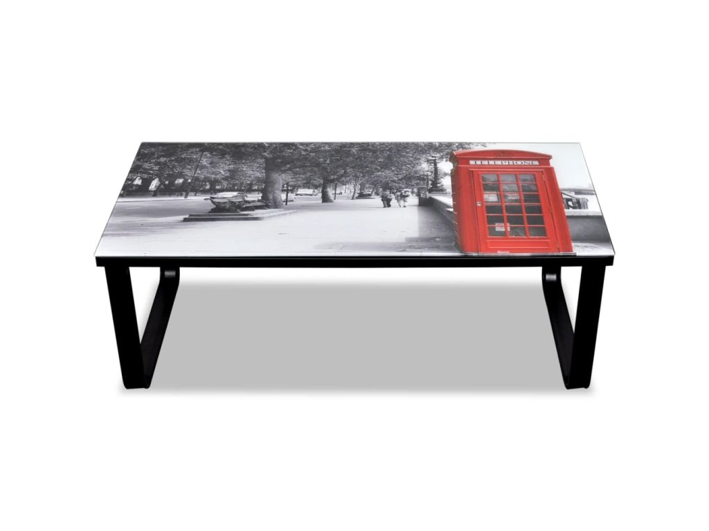 Tento obdélníkový konferenční stolek s potiskem s motivem telefonní budky na stolní desce má moderní, elegantní vzhled a bude se hodit k nábytku ve vašem domě. Můžete ho používat jako konferenční nebo jako odkládací stolek.
