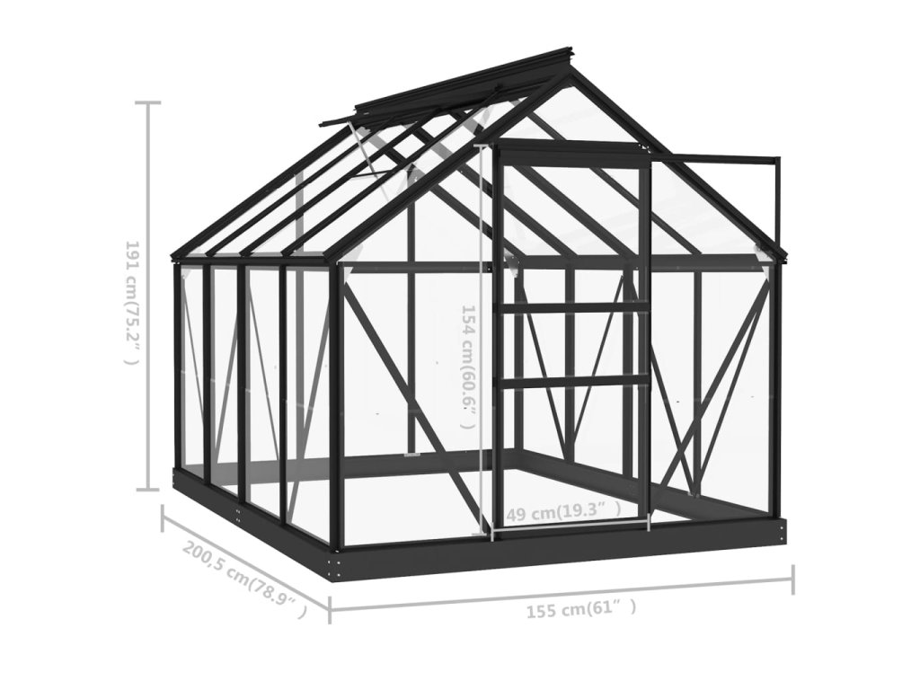 Skleněný skleník antracitový 155 x 200,5 x 191 cm hliník 3082334