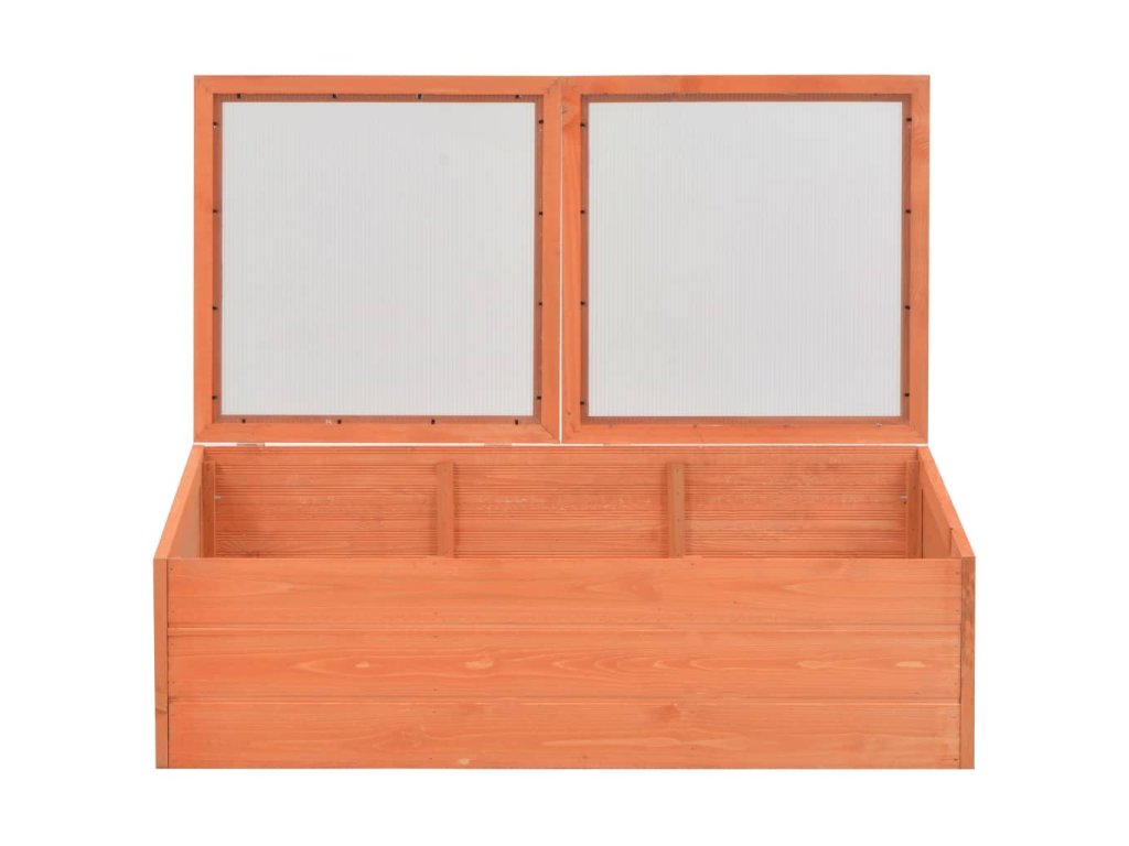 Tento zahradní skleník je vyrobený z polykarbonátové desky a pevného dřeva, je tedy odolný s dlouhou životností. Je dostatečně hluboký a široký, aby pojal velké množství půdy, a poskytl vám tak spoustu prostoru pro vaše rostliny, zeleninu, bylinky a květiny. Odklápěcí víko usnadňuje zalévání či vytahování rostlinek.