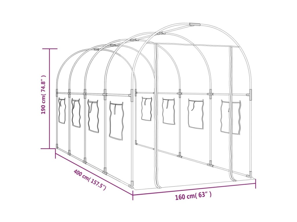 Skleník průhledný 160 x 400 x 190 cm PVC práškově lakovaná ocel 317247