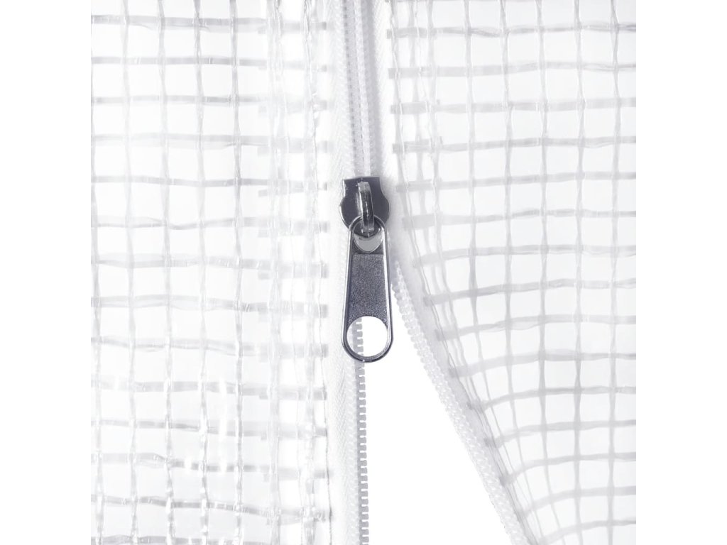 - Praktický design: Skleník je navržen pro snadný přístup a optimalizovanou cirkulaci vzduchu díky rolovacím dveřím na zip a 4 bočním rolovacím síťovaným oknům.
