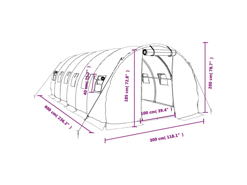 Skleník s ocelovým rámem bílý 18 m² 6 x 3 x 2 m 3188051