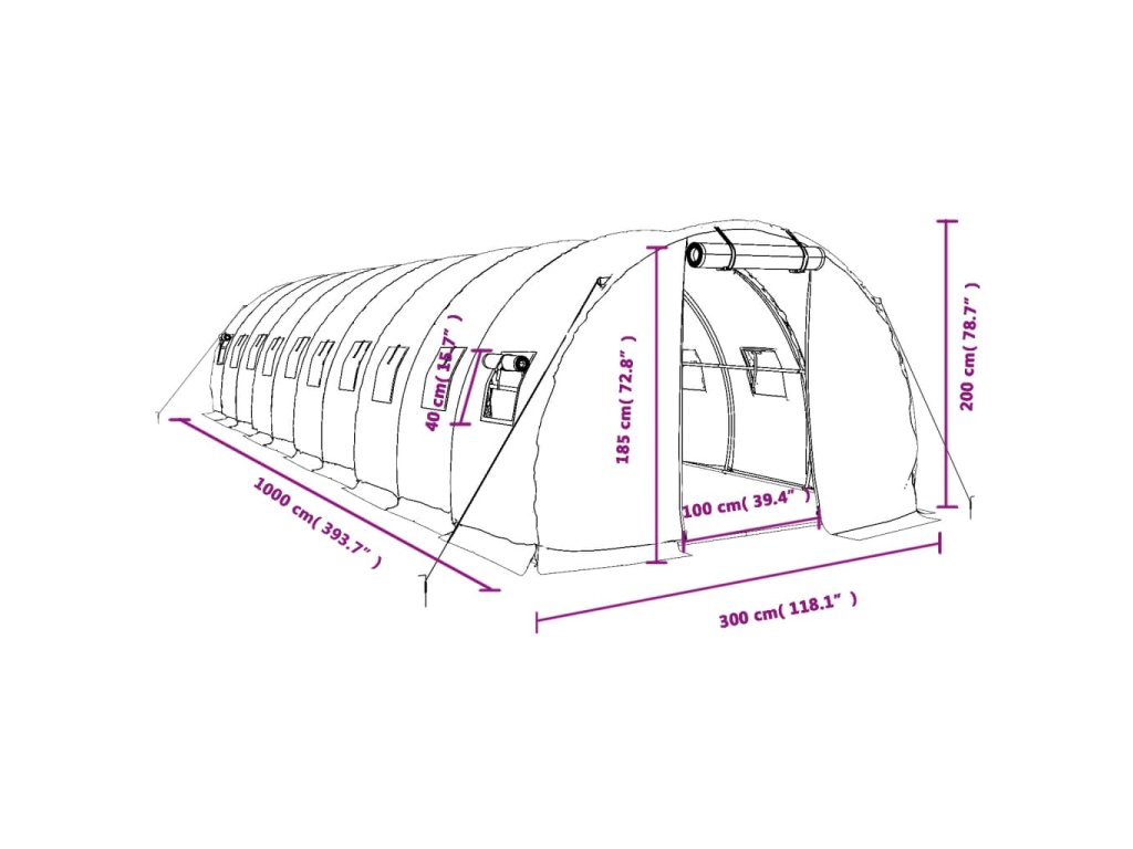 Skleník s ocelovým rámem bílý 30 m² 10 x 3 x 2 m 3188053