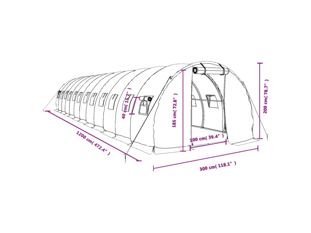 Skleník s ocelovým rámem bílý 36 m² 12 x 3 x 2 m 3188054