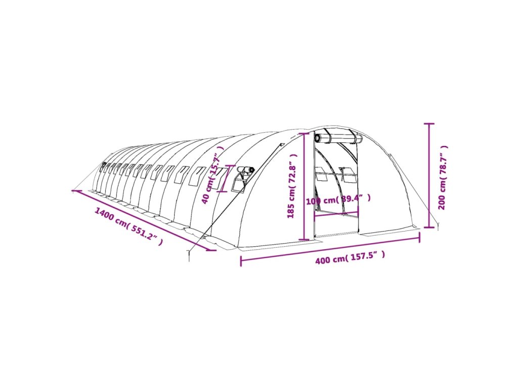 Skleník s ocelovým rámem bílý 56 m² 14 x 4 x 2 m 3188077