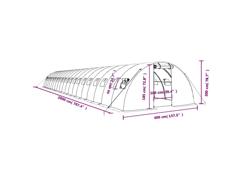 Skleník s ocelovým rámem bílý 80 m² 20 x 4 x 2 m 3188080