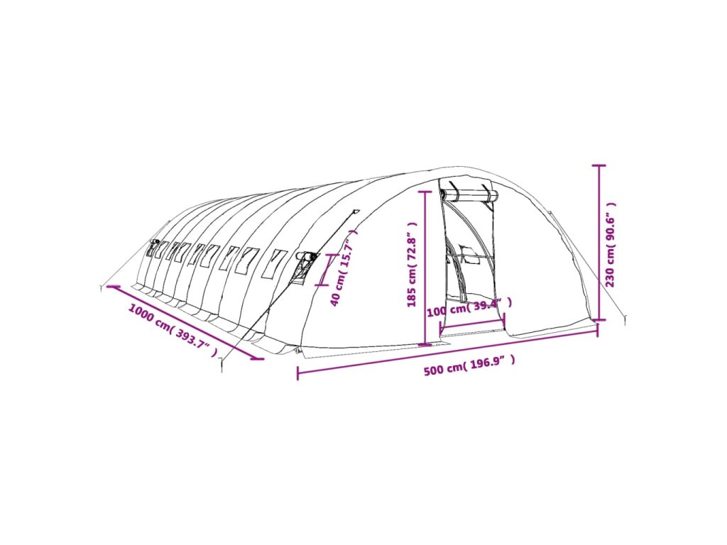 Skleník s ocelovým rámem zelený 50 m² 10 x 5 x 2,3 m 3188086