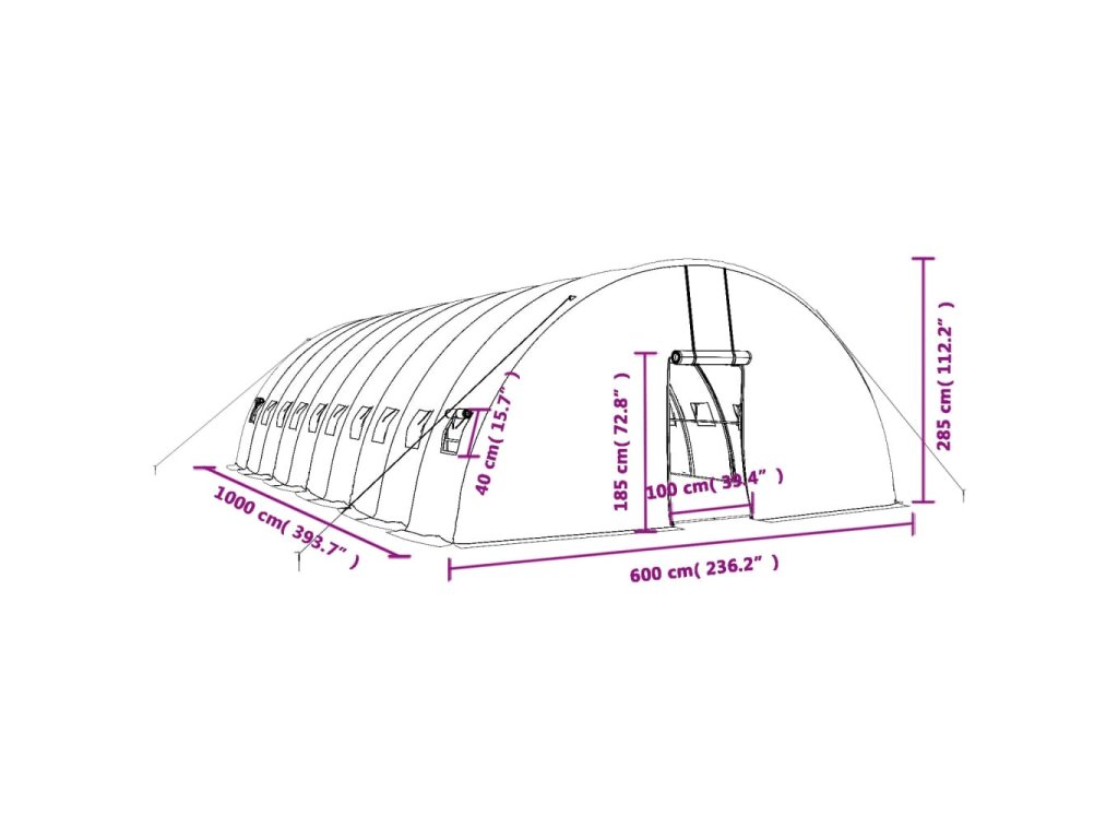 Skleník s ocelovým rámem zelený 60 m² 10 x 6 x 2,85 m 3188108