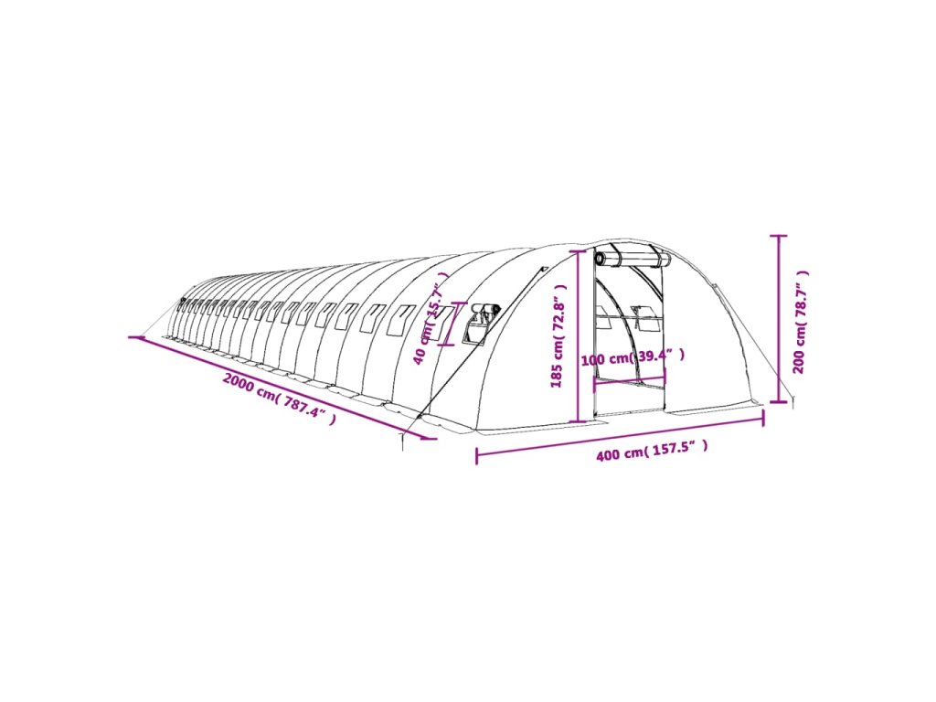 Skleník s ocelovým rámem zelený 80 m² 20 x 4 x 2 m 3188069