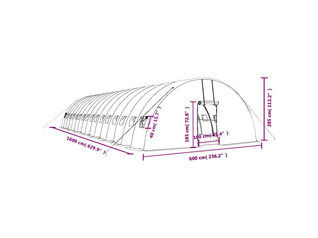Skleník s ocelovým rámem zelený 96 m² 16 x 6 x 2,85 m 3188111