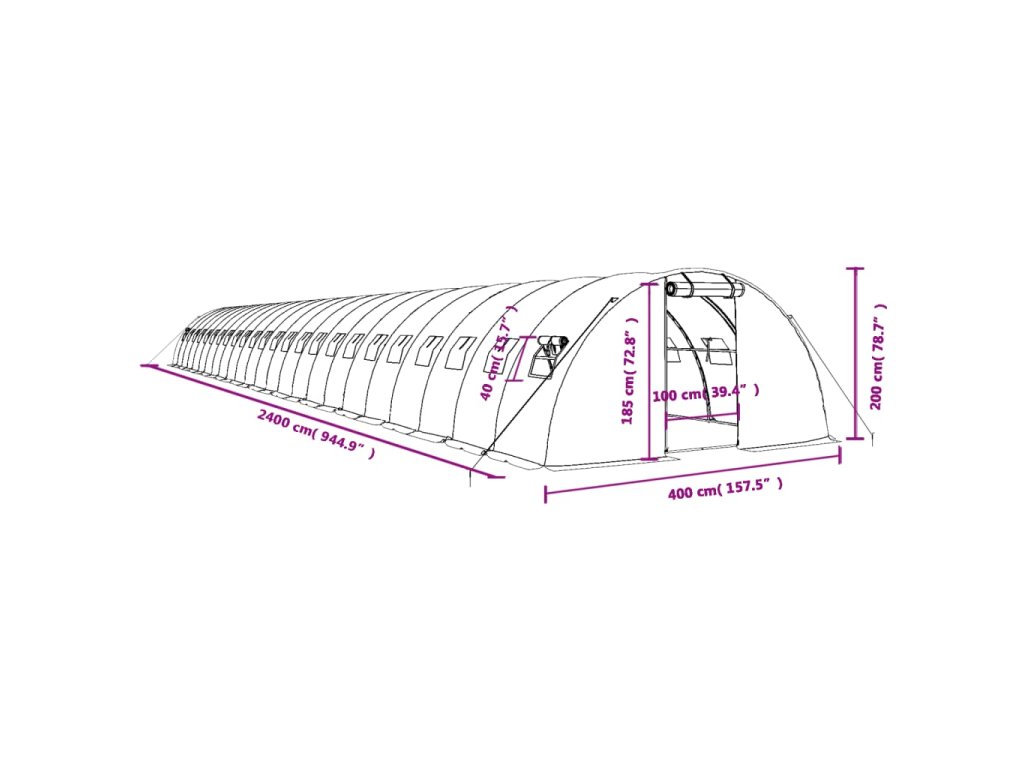 Skleník s ocelovým rámem zelený 96 m² 24 x 4 x 2 m 3188071
