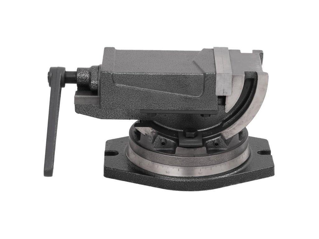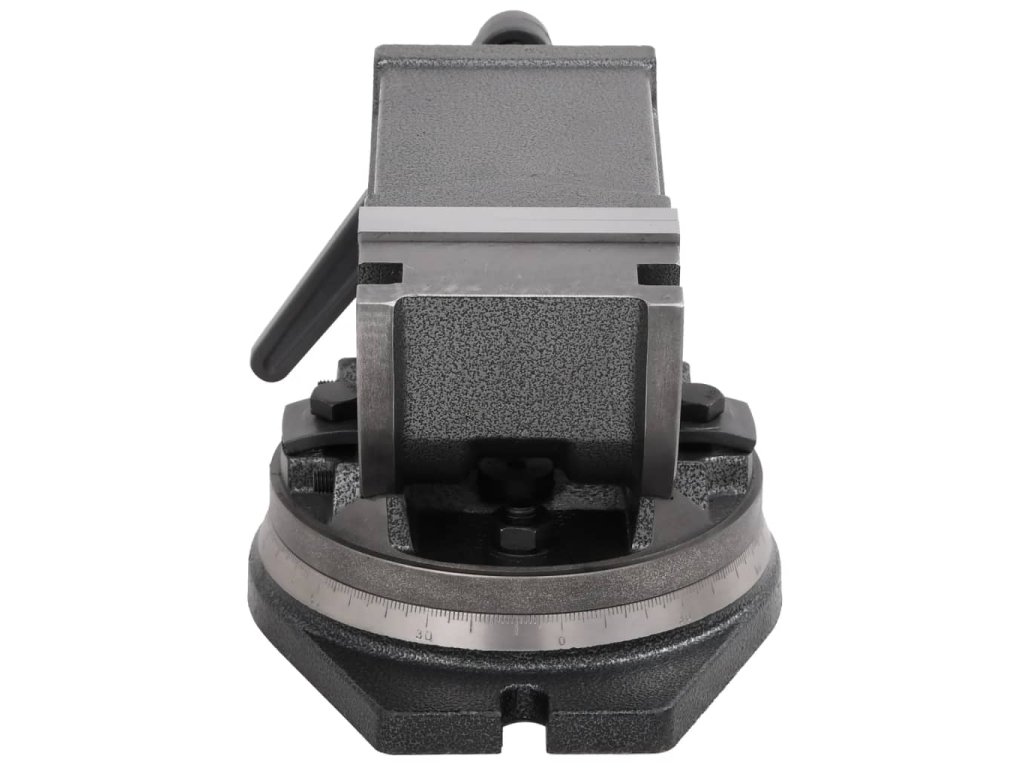 Masivní šroub vám umožní přizpůsobit rozpětí vašemu obrobku na míru. Čelisti jsou kalené, a proto mohou vyhovět i potřebám náročného vrtání a frézování. Dvojosé uchycení a jemně dělená stupnice umožňují sklon 0–90°, který je možné zajistit upínací pákou.
