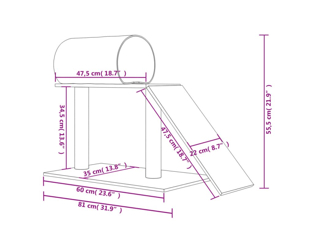 - Praktický design: Kočičí škrabadlo je navrženo s tunelem a žebříkem a poskytuje kočkám ideální místo pro šplhání, sezení, škrábání, schovávání a také odpočinek.