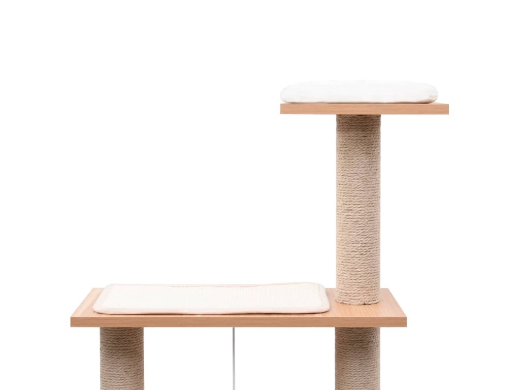 Vaši kočičí kamarádi si mohou naostřit drápky na jutou obalených sloupcích, což jim umožňuje vybít si své přirozené škrabací instinkty. Mohou se také těšit na honičky při skákání nahoru a dolů na tomto zábavném kočičím stromě. Až se dosytosti vyřádí při hraní, mohou vaši malí přátelé odpočívat na horních plošinách a dopřát si lepší výhled. Sisalový kobereček na střední plošině je možné sejmout. Naše škrabadlo pro kočky je navržené s útulným domečkem pro správné kočičí zdřímnutí. Polštářky dodané s kočičím stromem jsou pratelné a odnímatelné. Základna škrabadla pro kočky je robustní a stabilní.