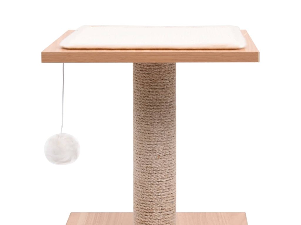 Vaši kočičí kamarádi si mohou naostřit drápky na jutou obaleném sloupku, což jim umožňuje vybít si své přirozené škrabací instinkty. Základna domečku pro kočky je robustní a stabilní. Mohou se také těšit na honičky při skákání nahoru a dolů na tomto zábavném kočičím stromě. Naše nejvyšší plošina je pokrytá odnímatelným sisalovým koberečkem. Hrou unavené kočičky si na ní mohou odpočinout a užívat si lepší výhled. Naše škrabadlo pro kočky je navržené s útulným domečkem pro vaši kočku, kde si může pohodlně zdřímnout. Pohodlný polštářek, umístěný v domečku, je pratelný. Zavěšená hračka je také součástí škrabadla pro extra zábavu.