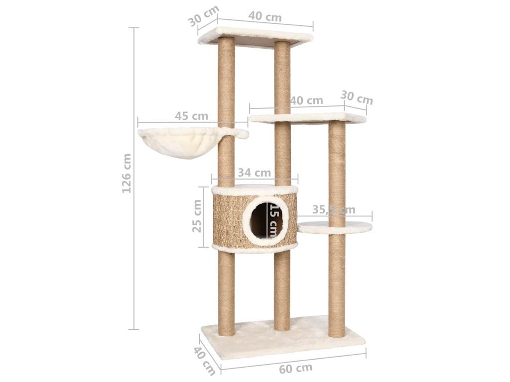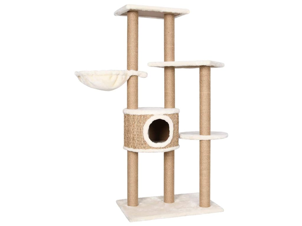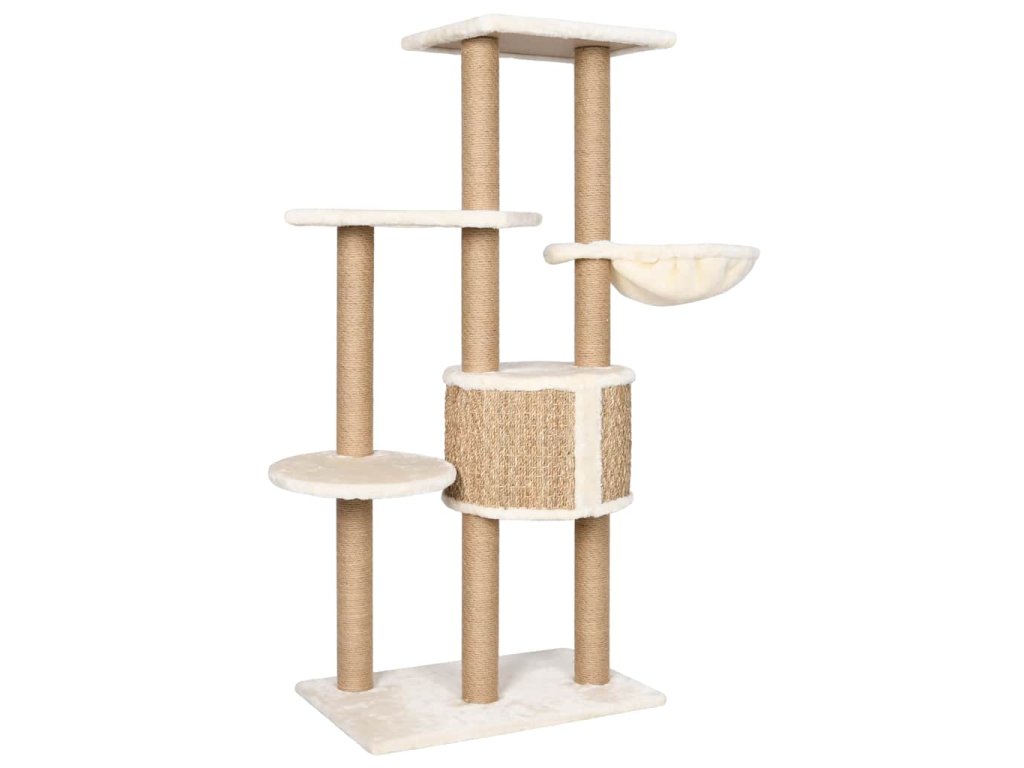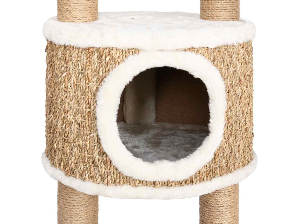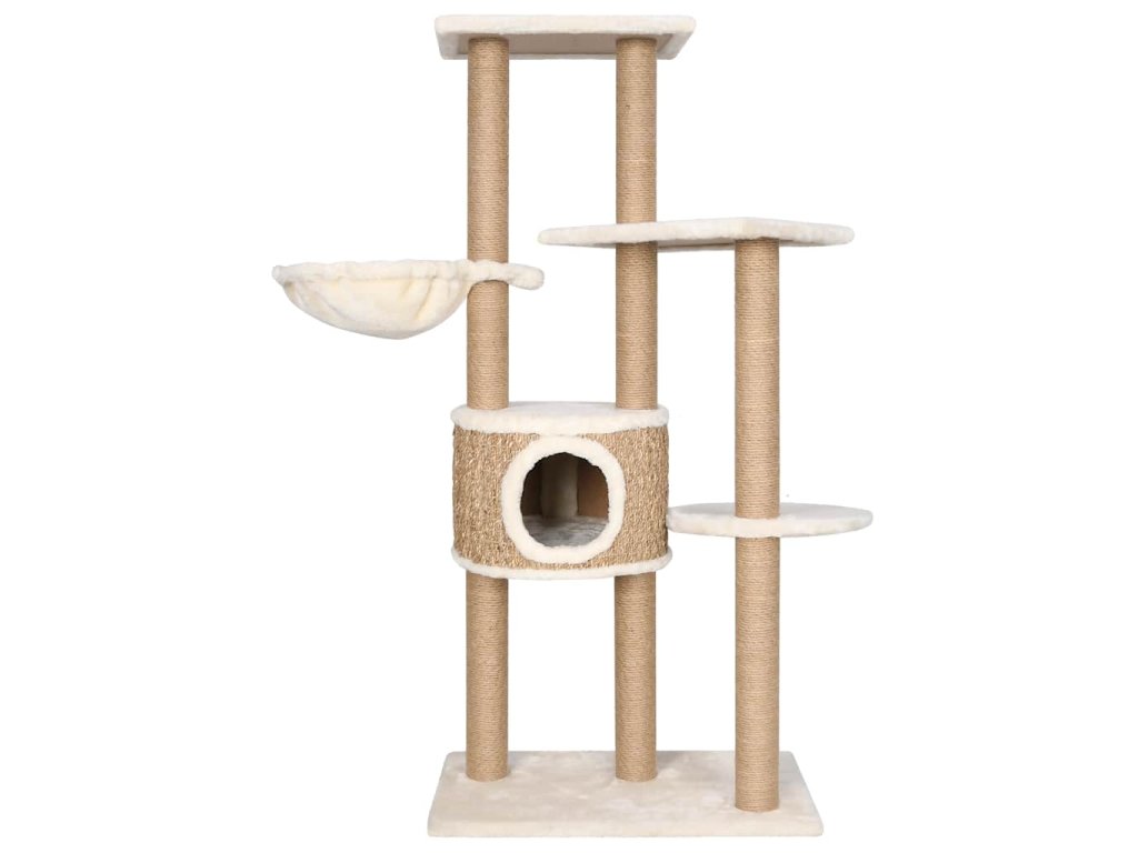 Vysoký strom pro kočky obsahuje několik plošin, košíků a pelíšků, takže vaše kočky mají vše, aby si mohly škrábat drápky, vyhlížet po okolí, šplhat a také relaxovat, co si srdce ráčí. Sloupky škrabadla jsou omotané mořskou trávou, na které si vaše zvířat mohou naostřit drápky. Má několik plošin, které vašim chlupatým přátelům poskytnou útulné místo k odpočinku nebo zdřímnutí.
