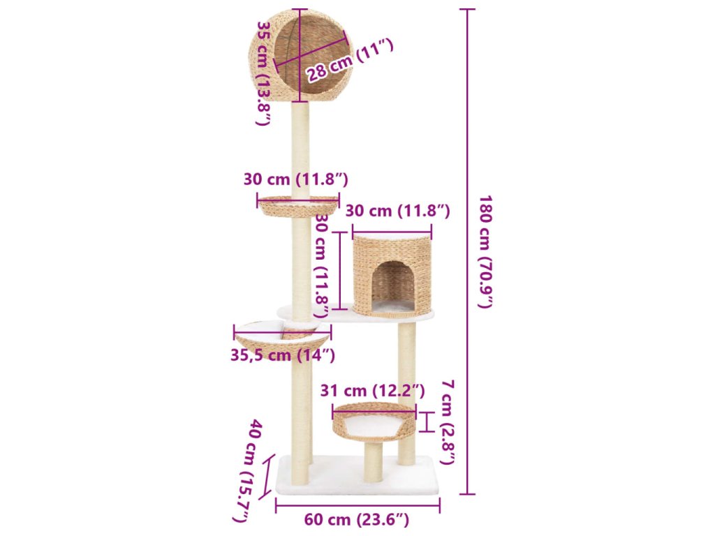 Kočičí strom dá vašim malým kamarádům příležitost protáhnout se a proběhnout, zejména během chladných zimních měsíců, kdy jsou zavření doma. Škrabací sloupky jsou omotány sisalovým provazem, na kterém si vaše kočičky mohou pohodlně a snadno brousit své drápky. Kočičí strom rovněž disponuje útulným domečkem a 4 košíky, kde si vaše kočka může zdřímnout nebo se prospat. Navíc je vybaven odnímatelnými a velmi pohodlnými polštáři, ve kterých se bude vaší kočce příjemně odpočívat.