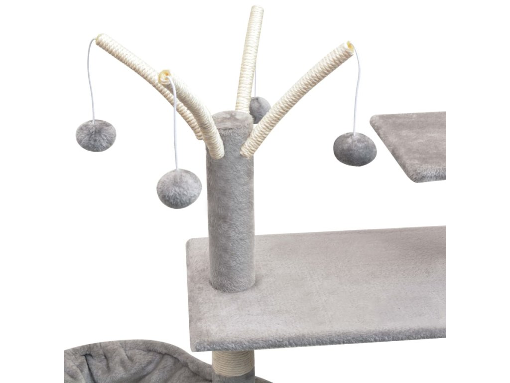 Vaši chlupatí kamarádi si mohou brousit drápky na tomto kočičímu škrabadle obaleném sisalovým provázkem, které kočkám dává možnost používat přirozené škrabací instinkty. Kočičky se také budou moci po stromě navzájem honit nahoru a dolů. Na samotném vršku jsou zavěšené hračky, které zaujmou všechny zvídavé mazlíčky. Pro odpočinek mohou kočky využít plošiny, ze kterých budou mít krásný rozhled. Mohou se také ukrýt v útulných domečcích a dokonce v nich i spát. Krom toho jsme pro ně připravili i pohodlný závěsný pelíšek.