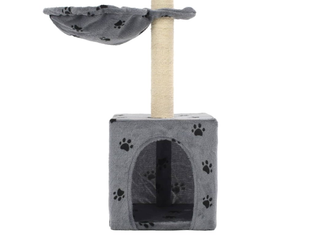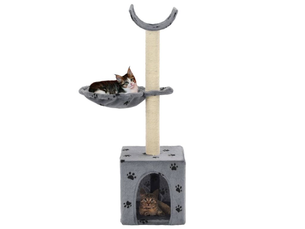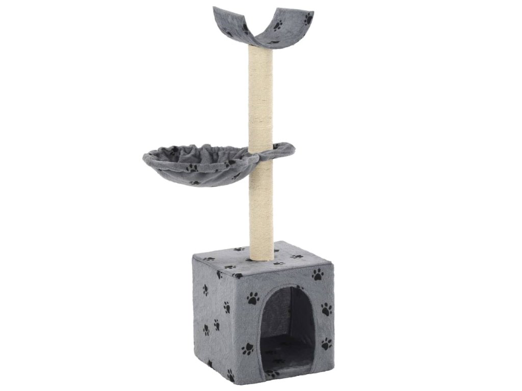 Škrabadlo pro kočky se sisalovými sloupky 105cm šedé s tlapkami 170624
