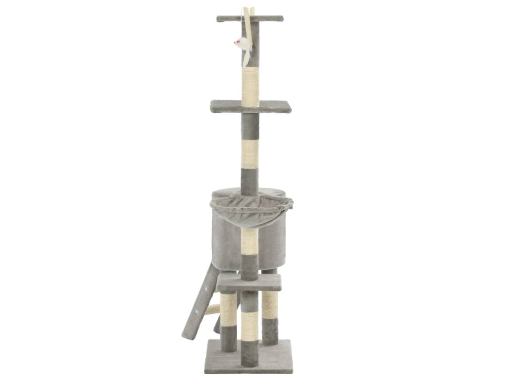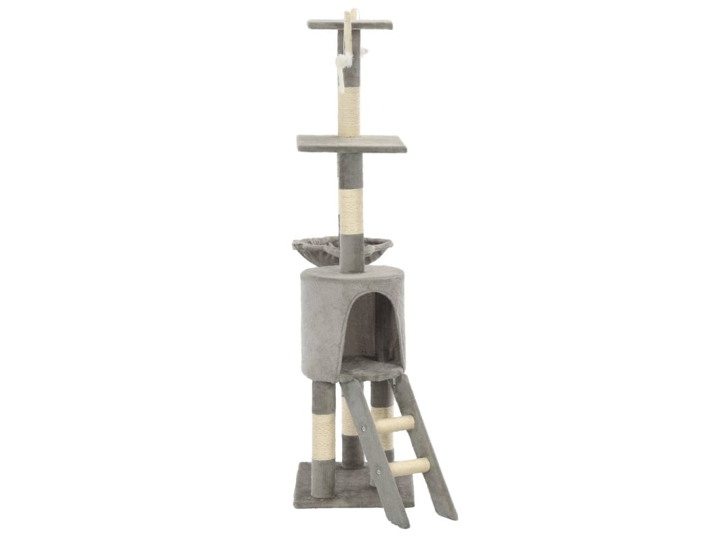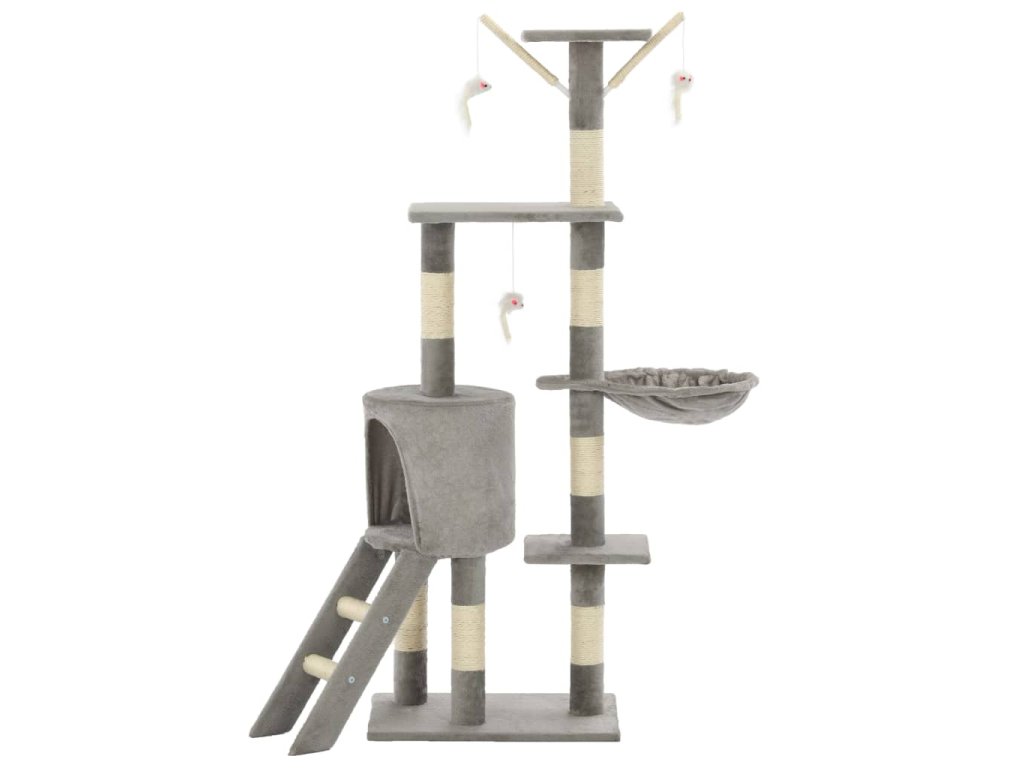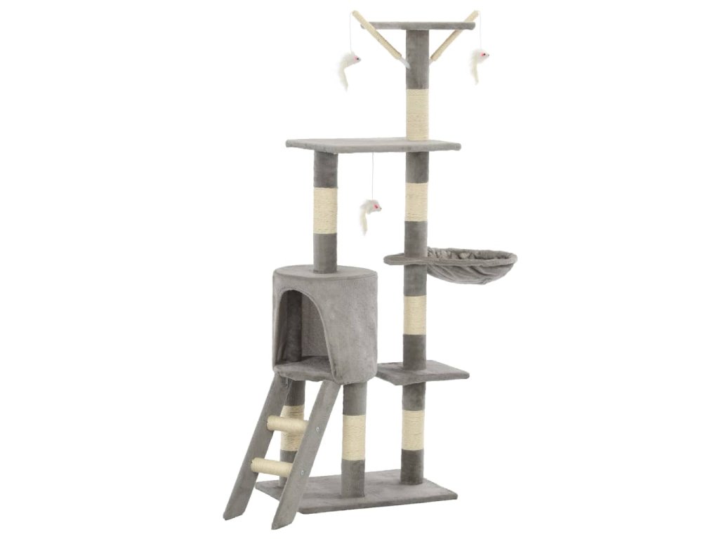 Škrabací sloupky s plyšovým potahem jsou omotány sisalovým provazem, což je pro vaše kočkovité kamarády velice pohodlné a praktické pro ostření jejich drápků. Vaše kočky si na této hračce užijí spoustu zábavy, až se budou navzájem honit a skákat nahoru a dolů. Náš kočičí strom disponuje také útulným domečkem, kde si vaše kočka může odpočinout nebo se prospat. Je navíc vybaven 3 myškami, plošinami k pozorování a místy k odpočinku, takže se váš malý kamarád nebude nikdy nudit. Základna tohoto škrabadla pro kočky je pevná a stabilní.