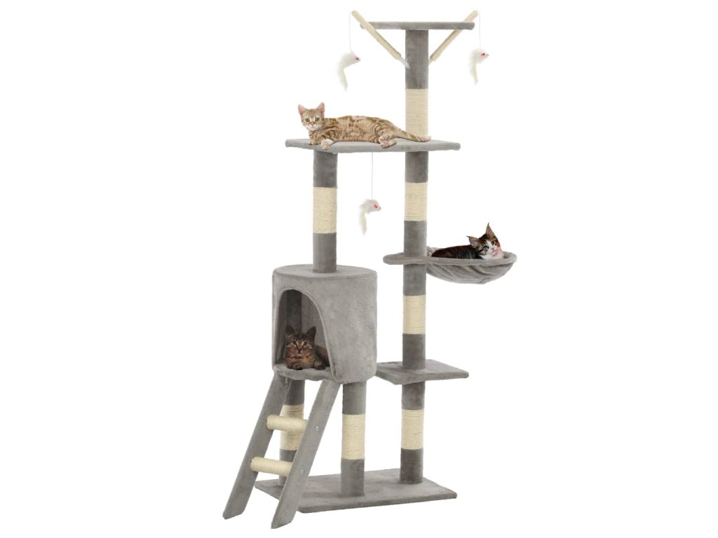 Škrabadlo pro kočky se sisalovými sloupky 138 cm šedé 170578