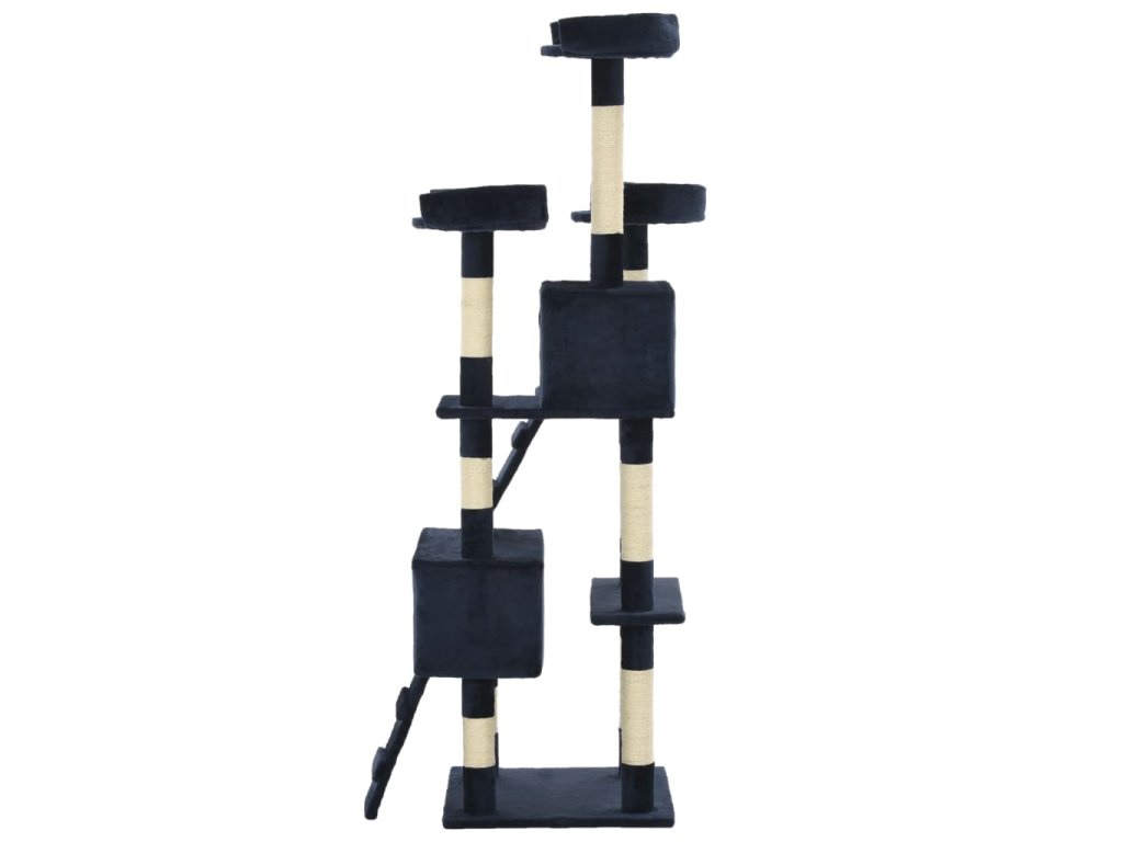 Vaši chlupatí kamarádi si mohou brousit své drápky na sisalovým provázkem obaleném škrabadlu, které poskytuje kočkám možnost vybít své přirozené škrabací instinkty. Budou si také užívat vzájemné honění a skákání nahoru a dolů po tomto zábavném kočičím stromě. Jakmile budou mít dostatek zábavy a hraní, budou vaši malí kamarádi milovat odpočinek na horních plošinách. Mohou se také ukrýt v útulných domečcích a zdřímnout si v nich. Se všemi těmito zábavnými možnostmi se tento domeček na hraní stane oblíbeným místem vašeho chlupatého kamaráda! Montáž škrabadla pro kočky je snadná.
