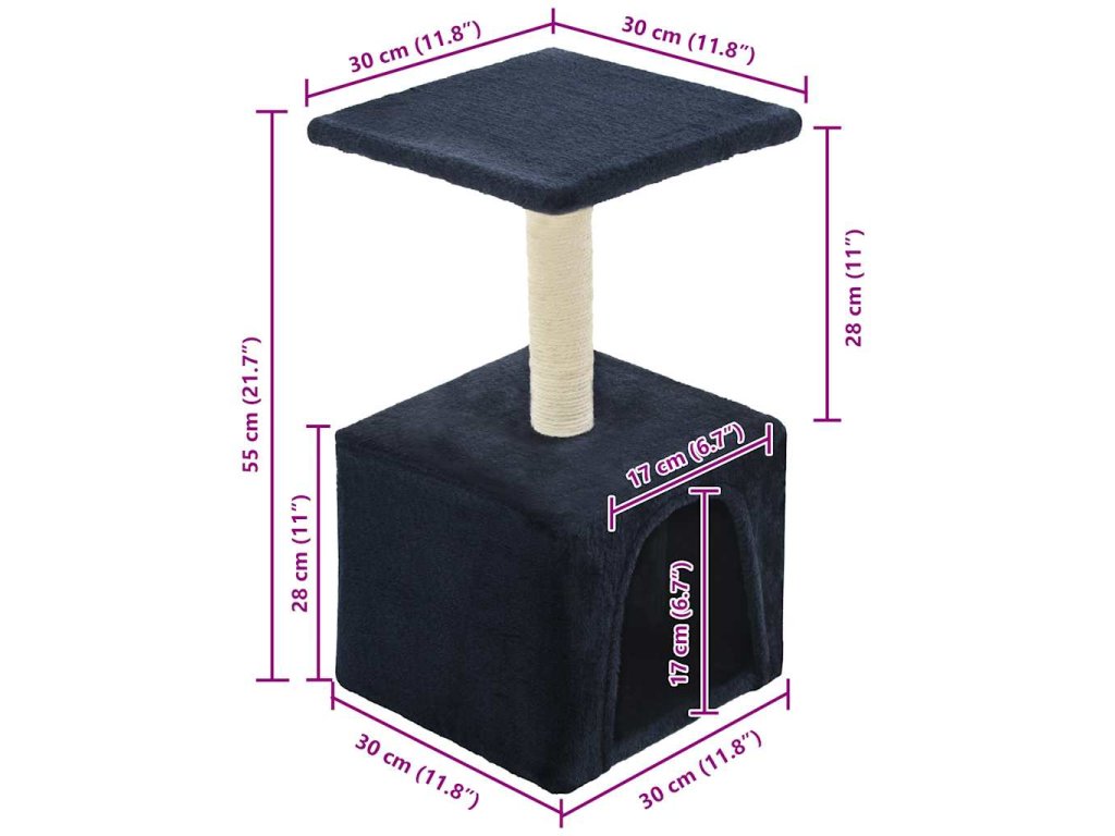 Plyšovým kobercem pokrytý povrch je velmi pohodlný a sloupek škrabadla je obalený sisalovým provázkem. Škrabadlo má pohodlný domeček a plošinu na pozorování okolí, aby udrželo vaše kočky stále zabavené. Podstavec je robustní a stabilní. Je vhodné pro koťata.