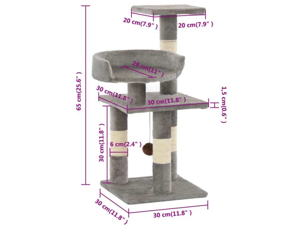 Škrabadlo pro kočky se sisalovými sloupky 65 cm šedé 170607