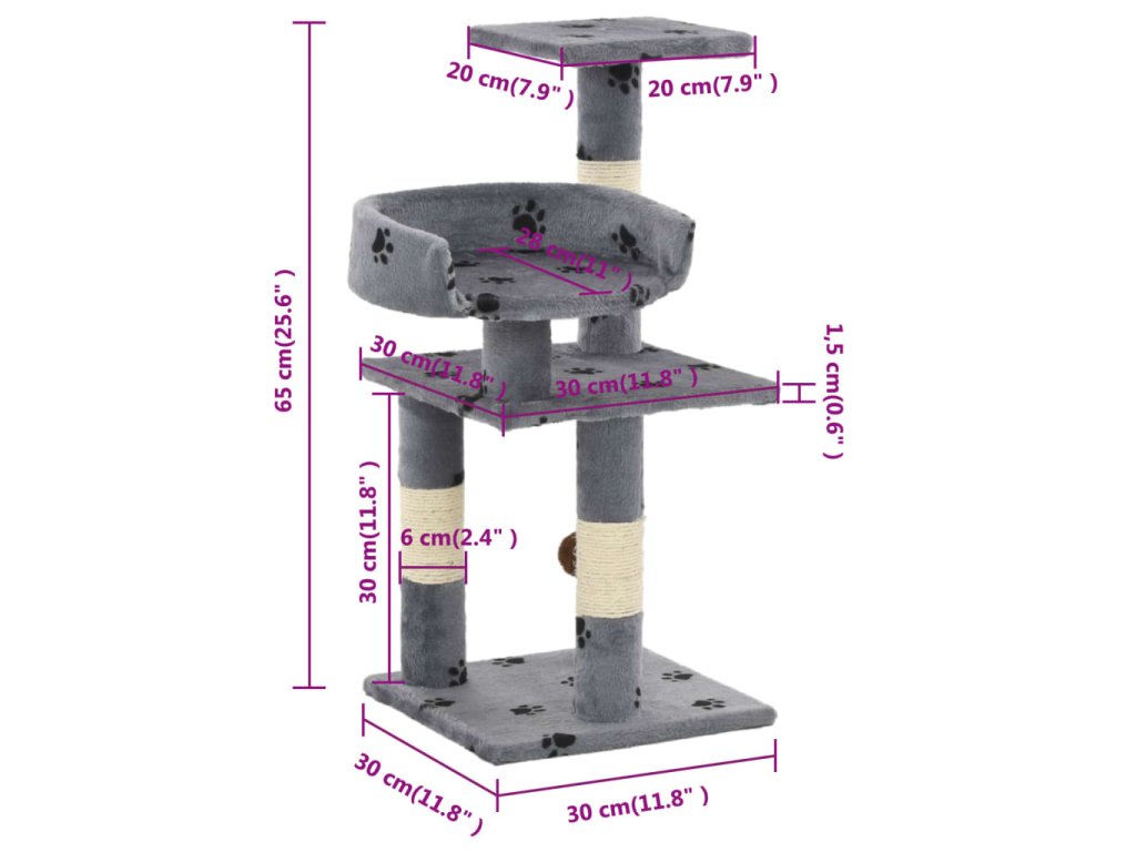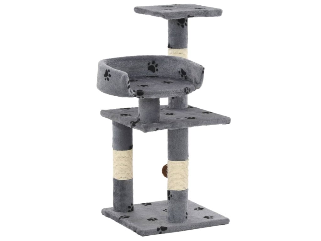 Škrabadlo pro kočky se sisalovými sloupky 65 cm šedé s tlapkami 170608