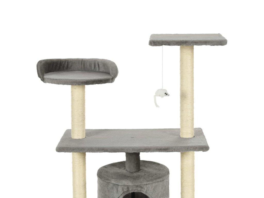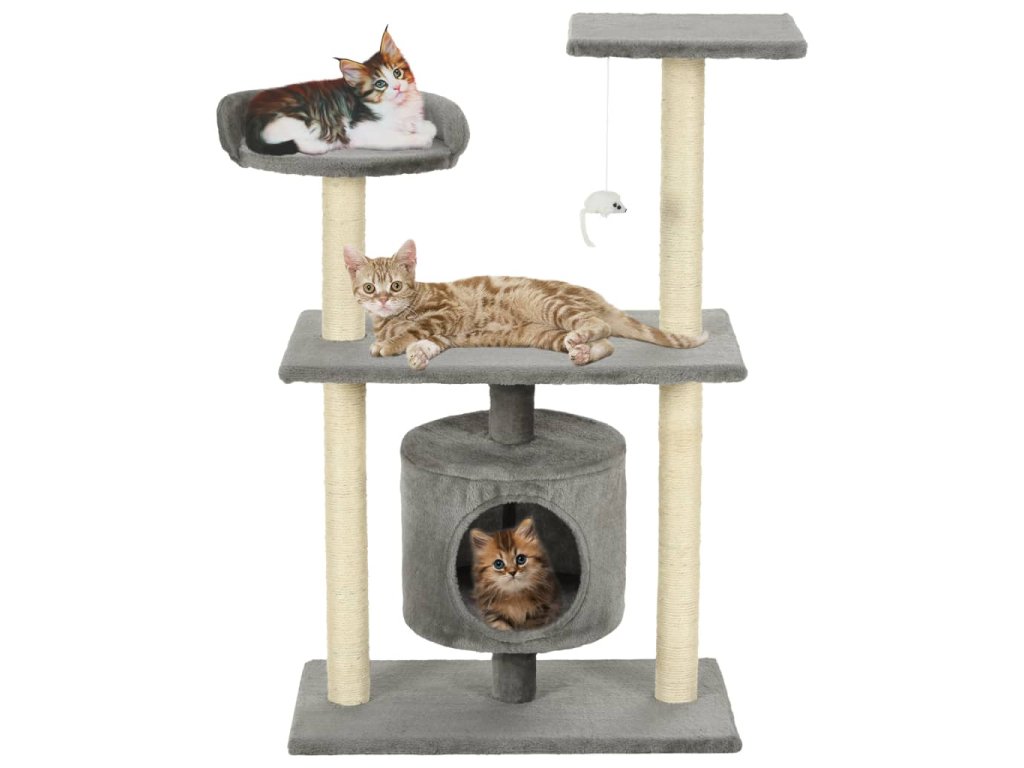 Vaši kočkovití kamarádi si mohou na tomto sisalovým provázkem obaleném škrabadlu brousit své drápky, což jim umožňuje vybít si své přirozené škrabací instinkty. Kočky si užijí spoustu zábavy, až se budou prohánět nahoru a dolů na tomto zábavném kočičím stromě. V horní části kočičího stromu je zavěšená hračka, která upoutá pozornost vašich zvídavých kočiček. Když si vaši malí kamarádi dostatečně vyřádí, rádi si odpočinou na horních plošinách, odkud mají lepší výhled. Mohou se také ukrýt v útulném domečku a zdřímnout si.