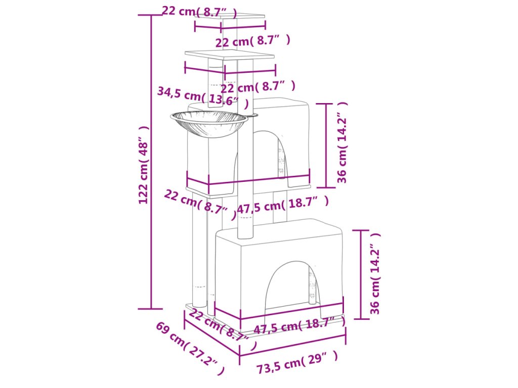 - Všestranná věž pro kočky: Víceúrovňový nábytek pro kočky je navržen se 2 domečky, košem a plošinami, které poskytují kočkám ideální místo pro šplhání, sezení, škrábání, schovávání se a také k odpočinku.
