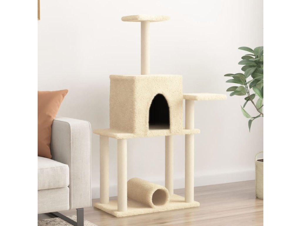 Škrabadlo pro kočky se sisalovými sloupky krémové 122 cm 172088