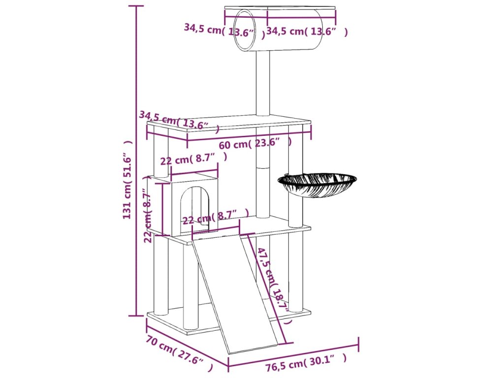 - Všestranná věž pro kočky: Víceúrovňový nábytek pro kočky je navržen s 1 domečkem, 1 hamakou, 1 tunelem, 1 žebříkem a plošinami, které poskytují kočkám ideální místo pro šplhání, sezení, škrábání, schovávání se a také k odpočinku.