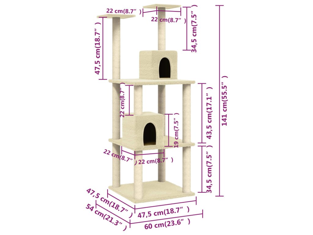 Škrabadlo pro kočky se sisalovými sloupky krémové 141 cm 171524