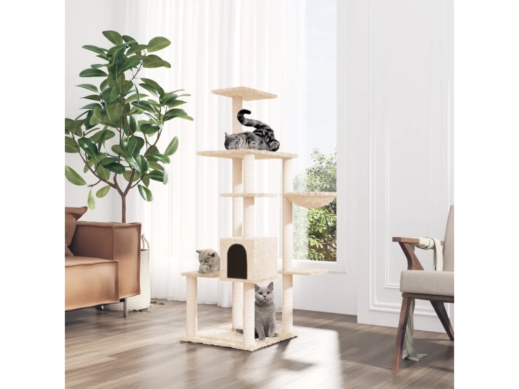 Škrabadlo pro kočky se sisalovými sloupky krémové 142 cm 171591