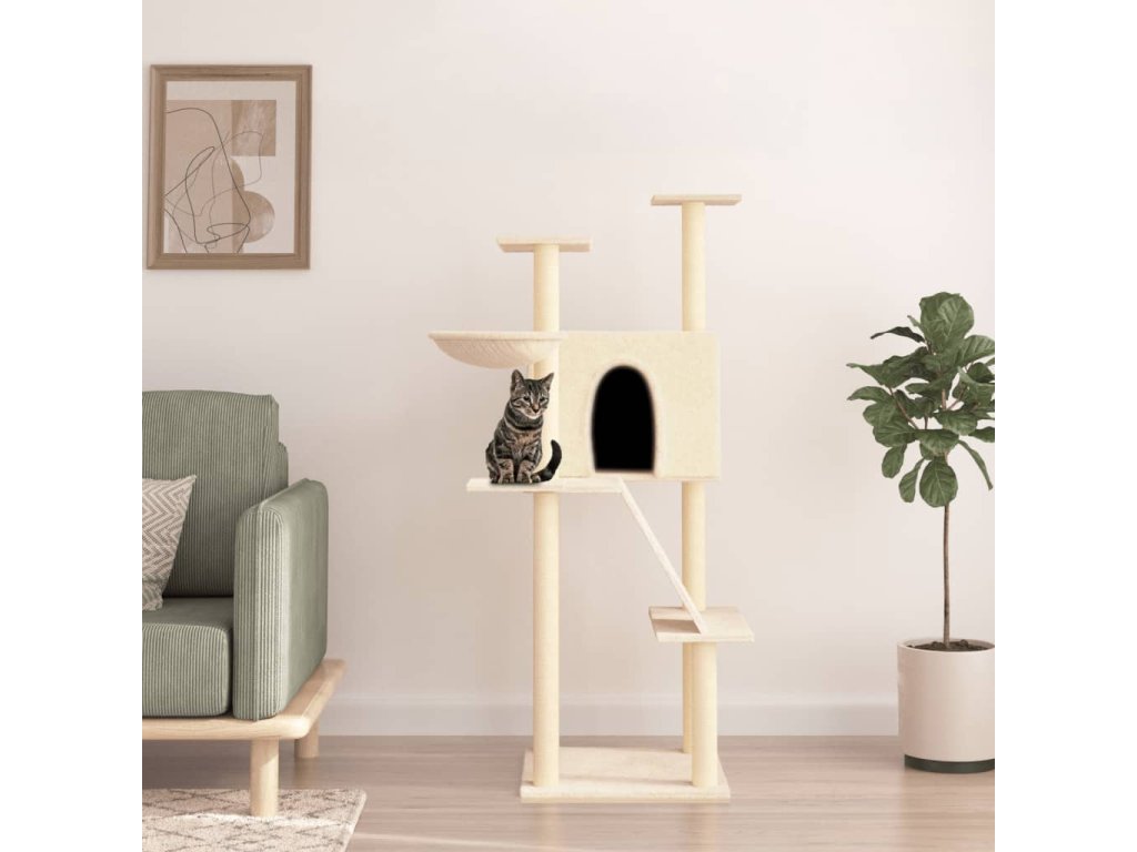 Škrabadlo pro kočky se sisalovými sloupky krémové 143 cm 171729