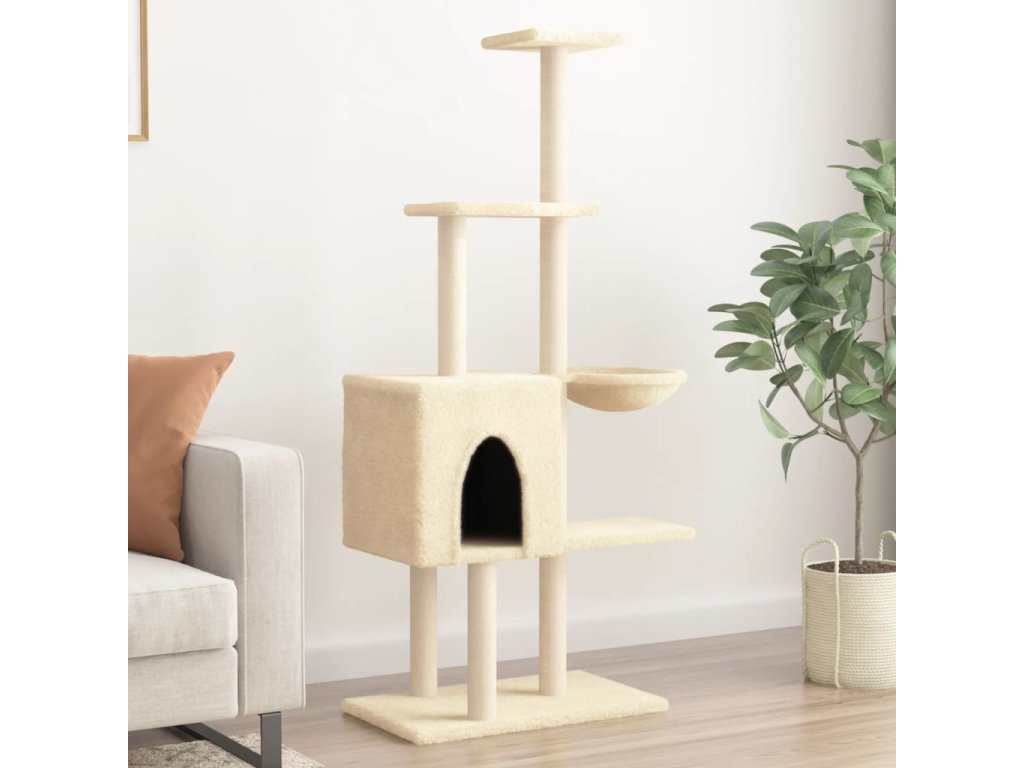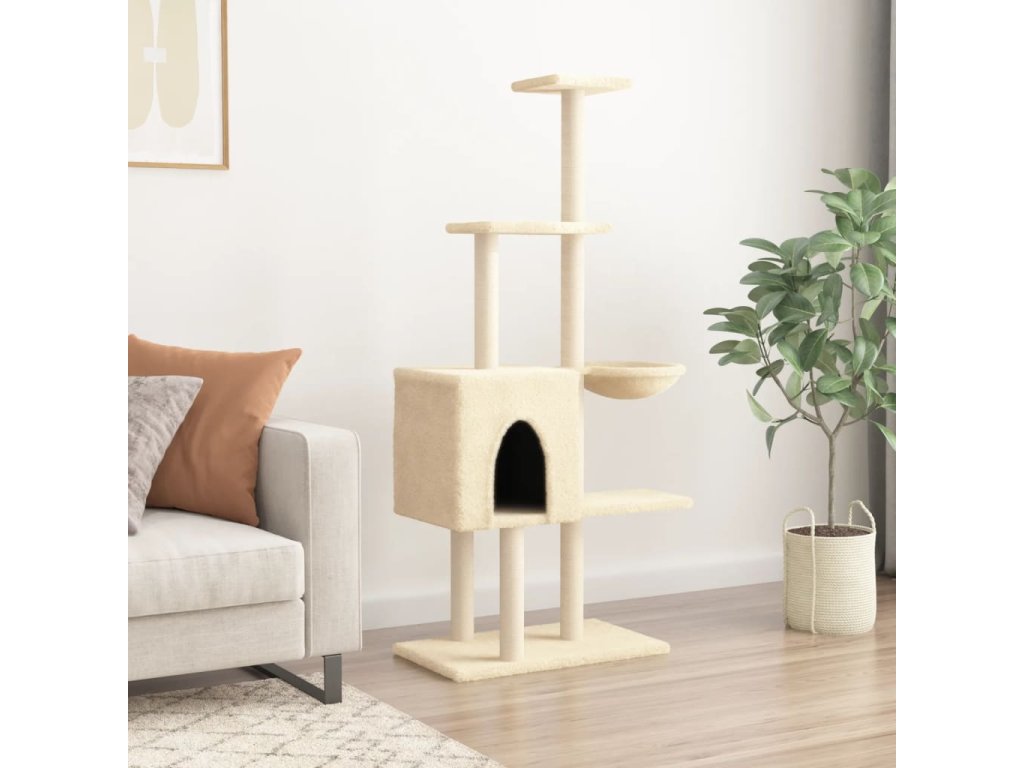 Škrabadlo pro kočky se sisalovými sloupky krémové 145 cm 172094