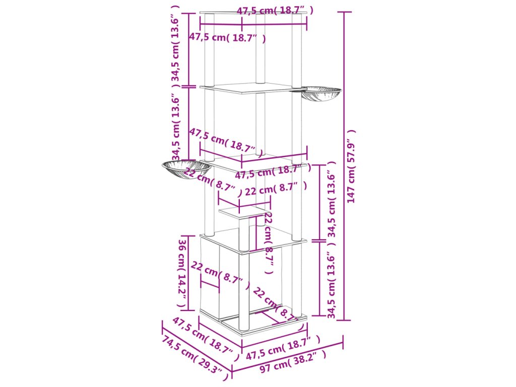 - Všestranná věž pro kočky: Víceúrovňový nábytek pro kočky je navržen se 2 koši, domečkem a plošinami, které poskytují kočkám ideální místo pro šplhání, sezení, škrábání, schovávání se a také k odpočinku.